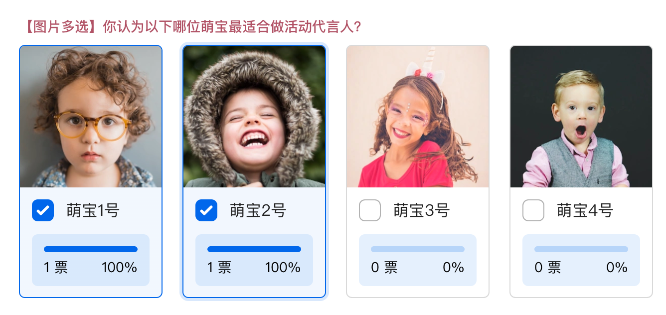 功能说明:在选择类题目-右侧「属性」中开启「实时显示投票人数」,填表者可在填写页面实时查看各选项的投票数量和占比。