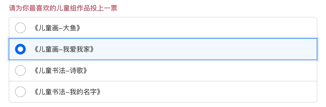 单项选泽字段:以文字形式展示选项,适用于文字描述清晰的选择场景