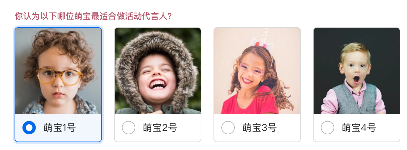 图片单选字段:以图片+文字形式展示选项,选项更直观,适用于需要视觉辅助的选择场景。