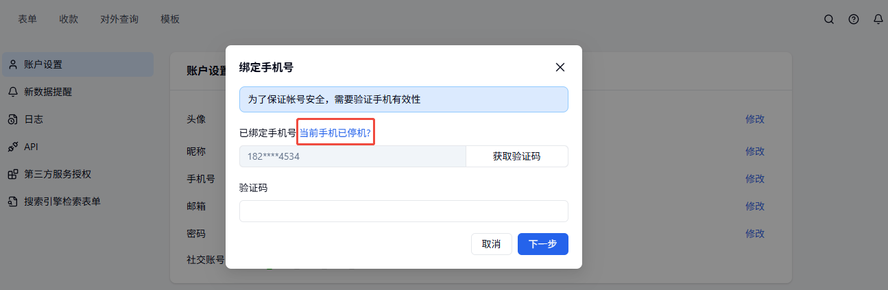 点击「当前手机已停机」,需要输入账号密码(如还没有登录密码,请先设置),然后绑定新的手机号。