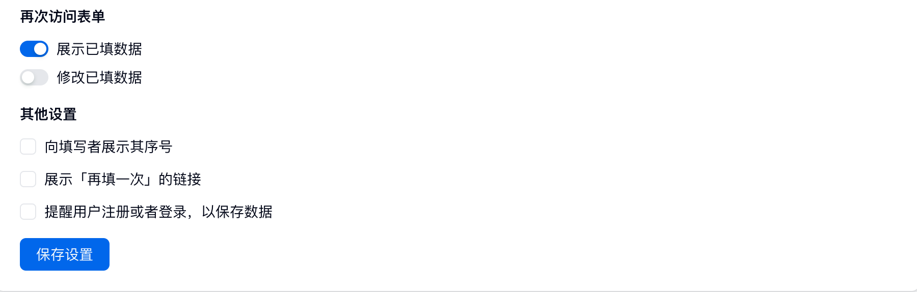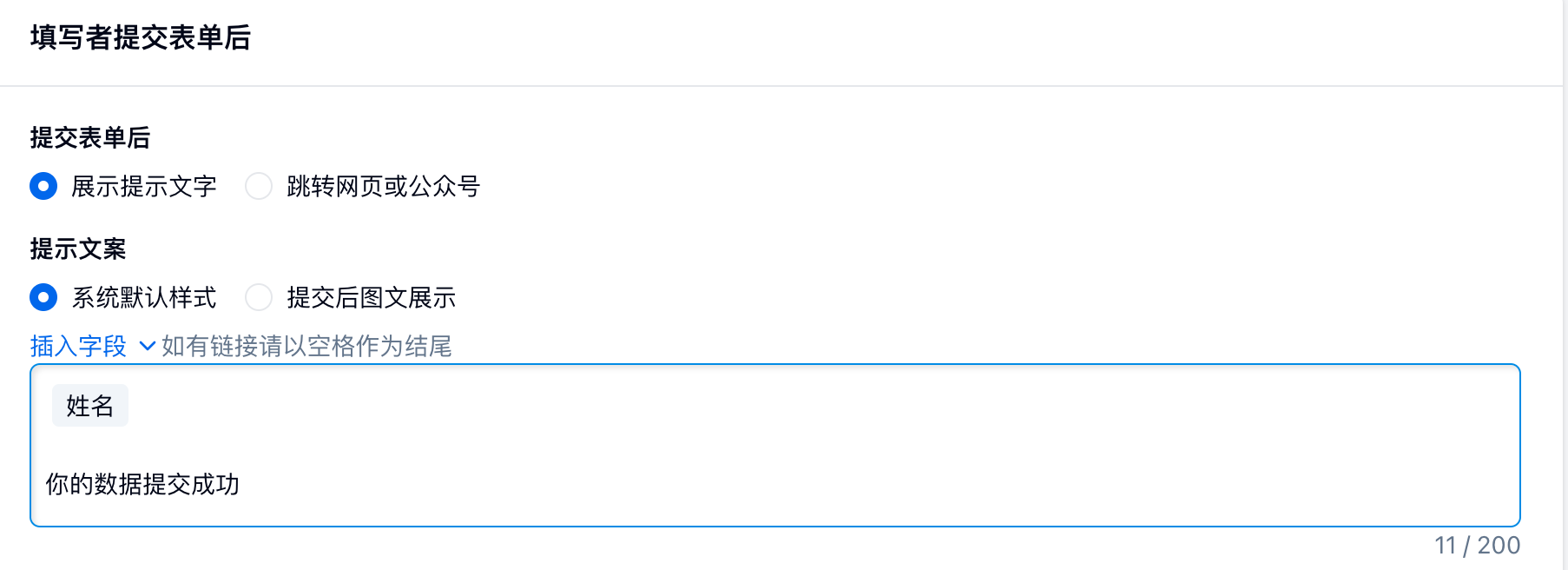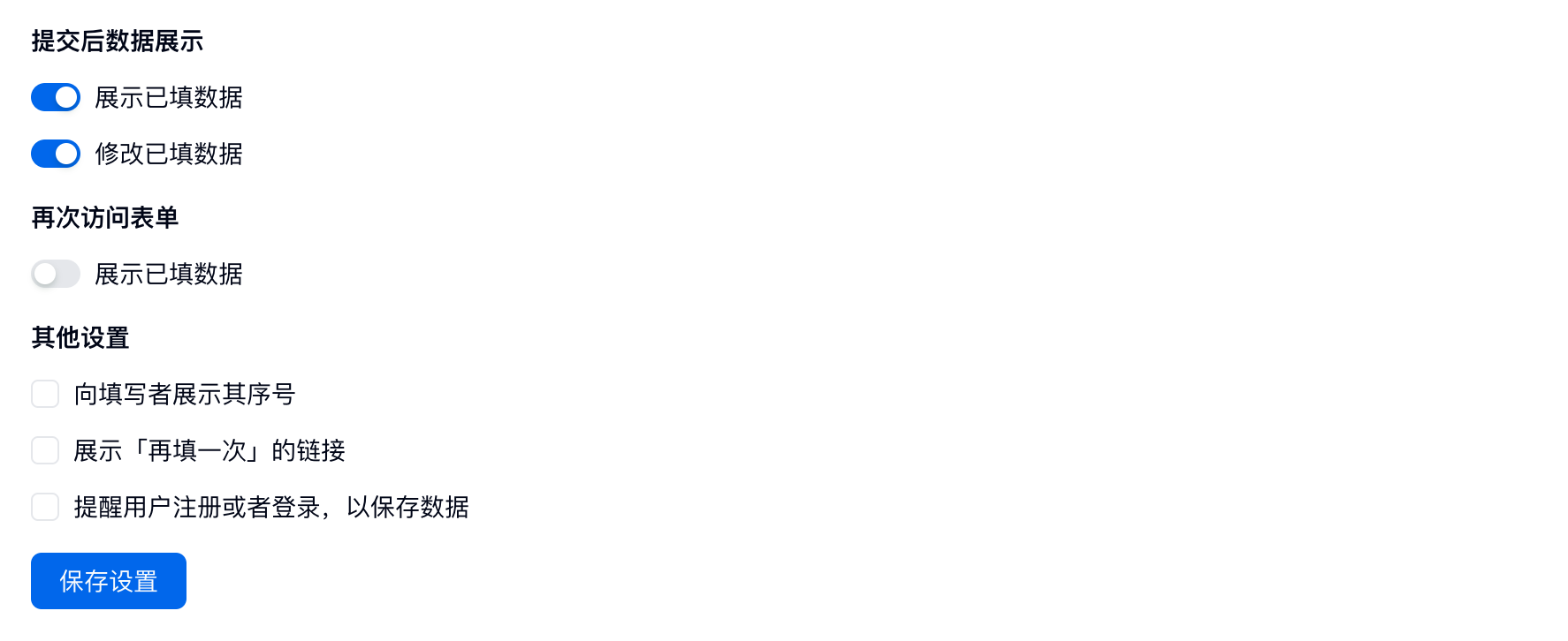 勾选「展示已填数据」:用户提交后会展现填表人提交的内容;
