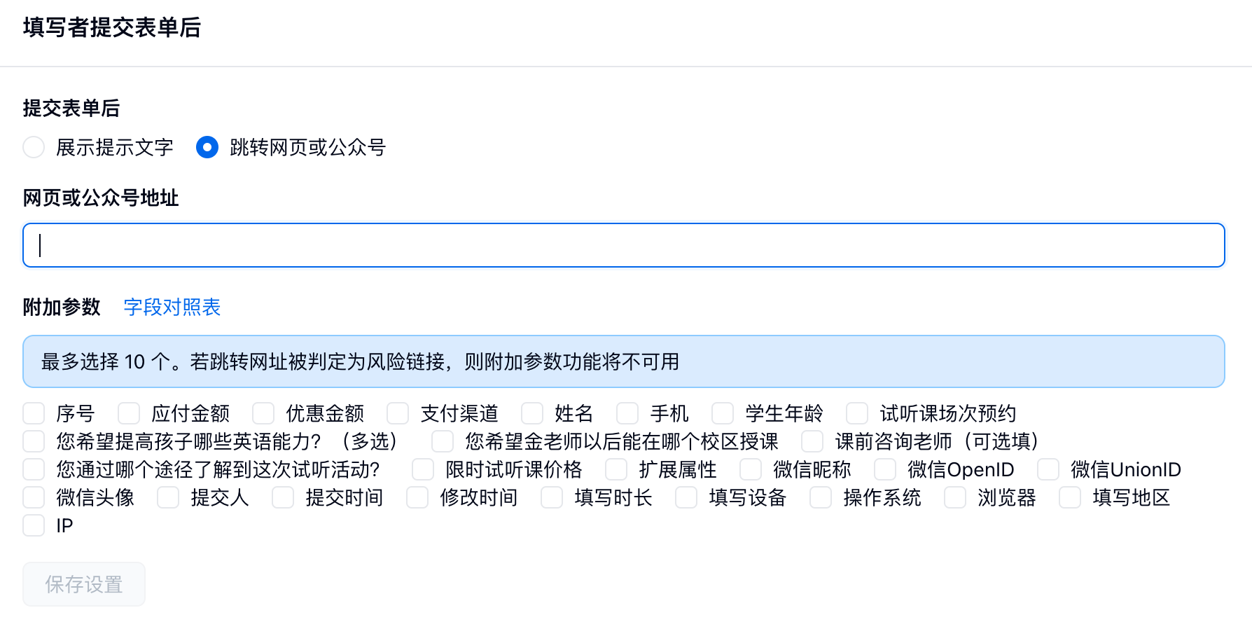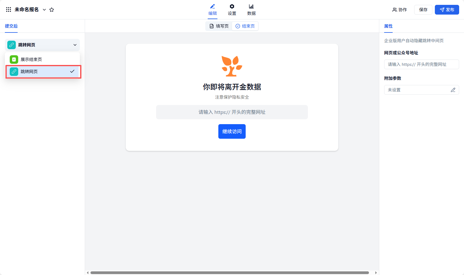 Q1:配置了提交后跳转到第三方网页,为什么会出现提示「你即将离开金数据」?