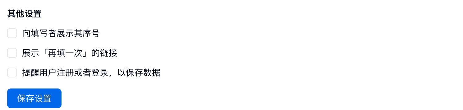 展示「再填一次」的链接:填表人提交后,显示「再填一次」链接,方便连续录入数据;