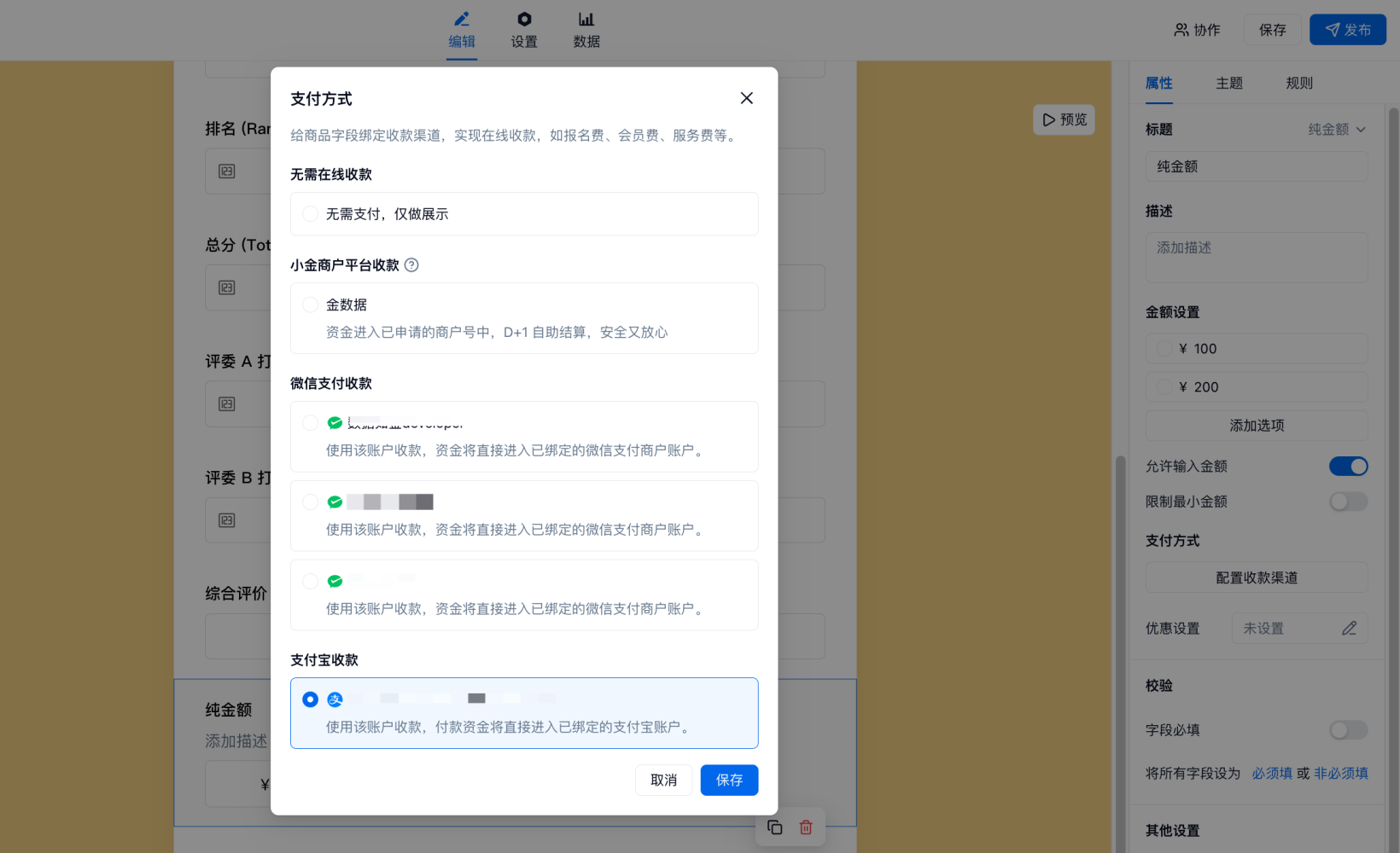 答:这通常是由你的支付宝邮箱填写错误引起的。请确认支付方式中填写的支付宝邮箱为你支付宝商家服务的邮箱,不要填写成你的金数据登录邮箱。