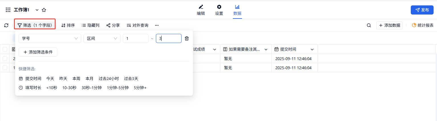 只支持在电脑端导出部分数据,如果你只需要导出部分数据,例如收集到的姓名、电话或只导出符合条件的数据,请按照以下步骤操作: