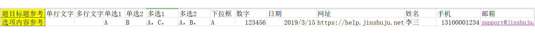 点击下载全字段 Excel 格式 ,供参考。如果你仍不知道 Excel 应是怎样的格式,可以向此表单手动添加几条数据,然后导出数据到 Excel 即可查看这个表单需要的格式了。