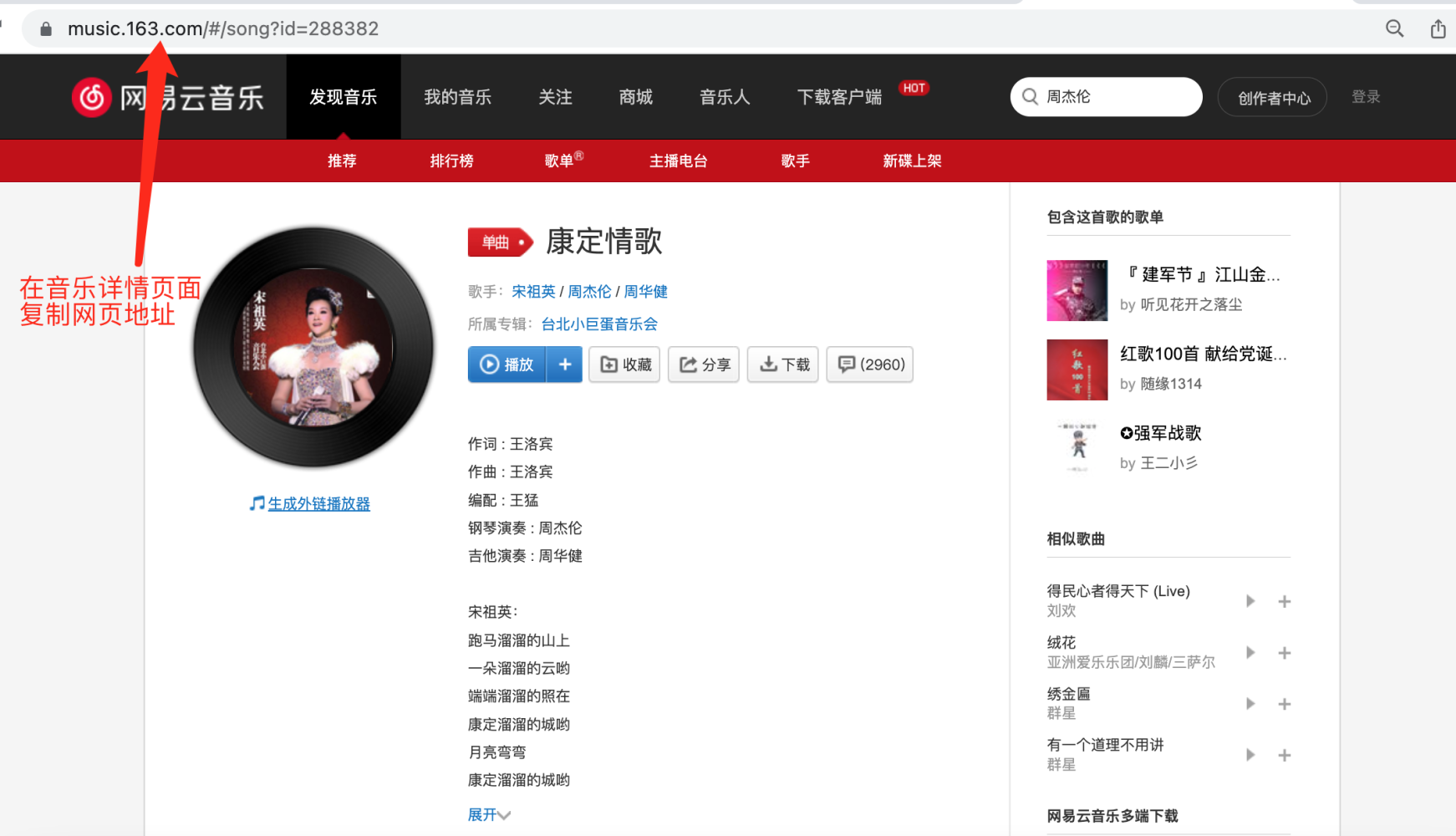 进入 网易云音乐(网页版)音乐详情页面,复制当前页面顶部的 URL 链接,并插入到金数据表单内。