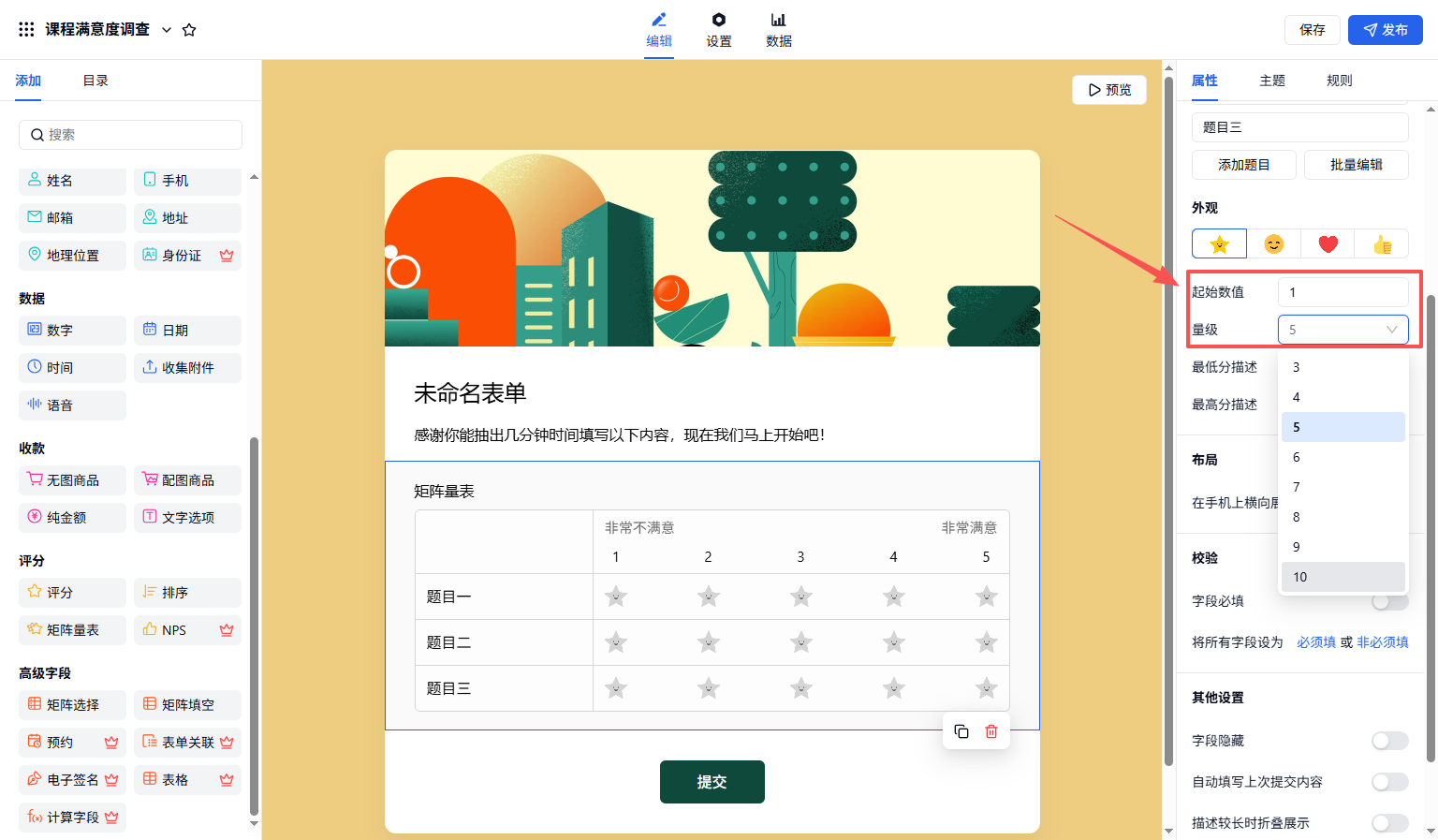 2、支持设置起始数值及通过下拉框选择 3-10 之间的量级,便于用户按需灵活设置。