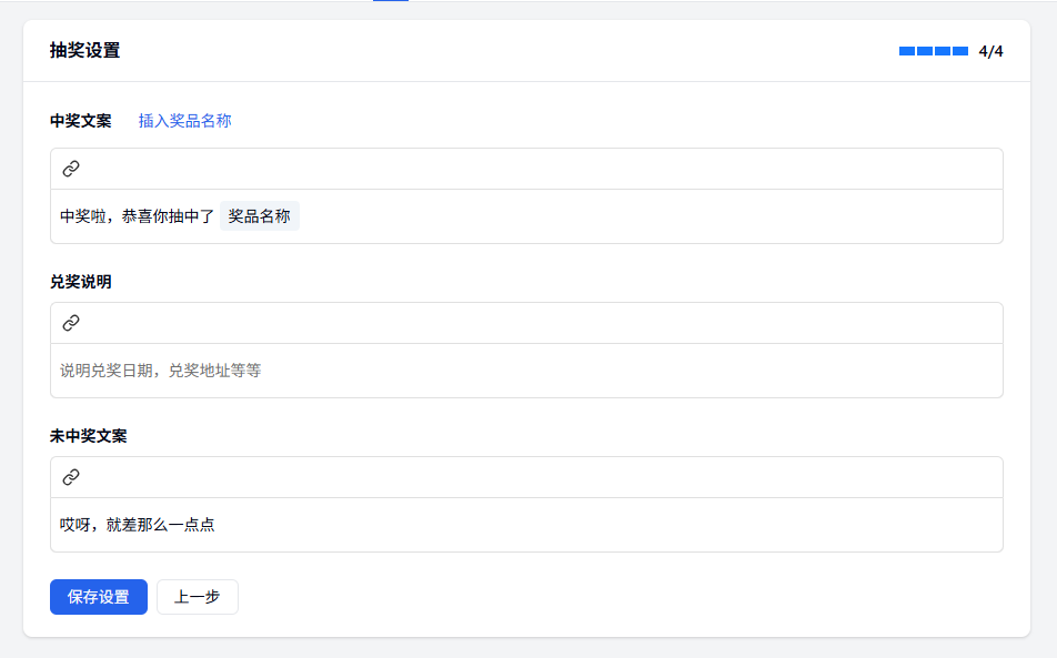 比如可以将中奖后要收集地址的表单链接插入到中奖文案中。