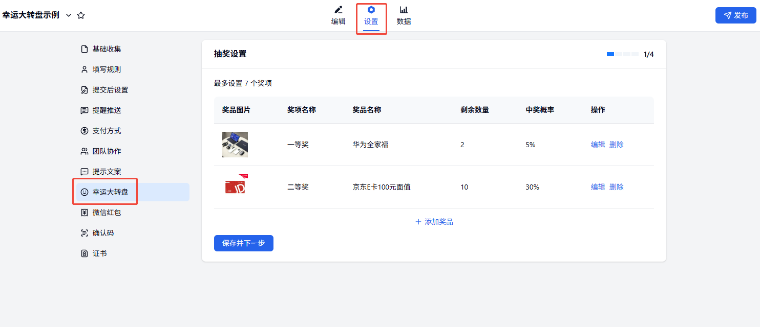 原幸运大转盘应用已下架,将其功能迁移至表单设置页面。