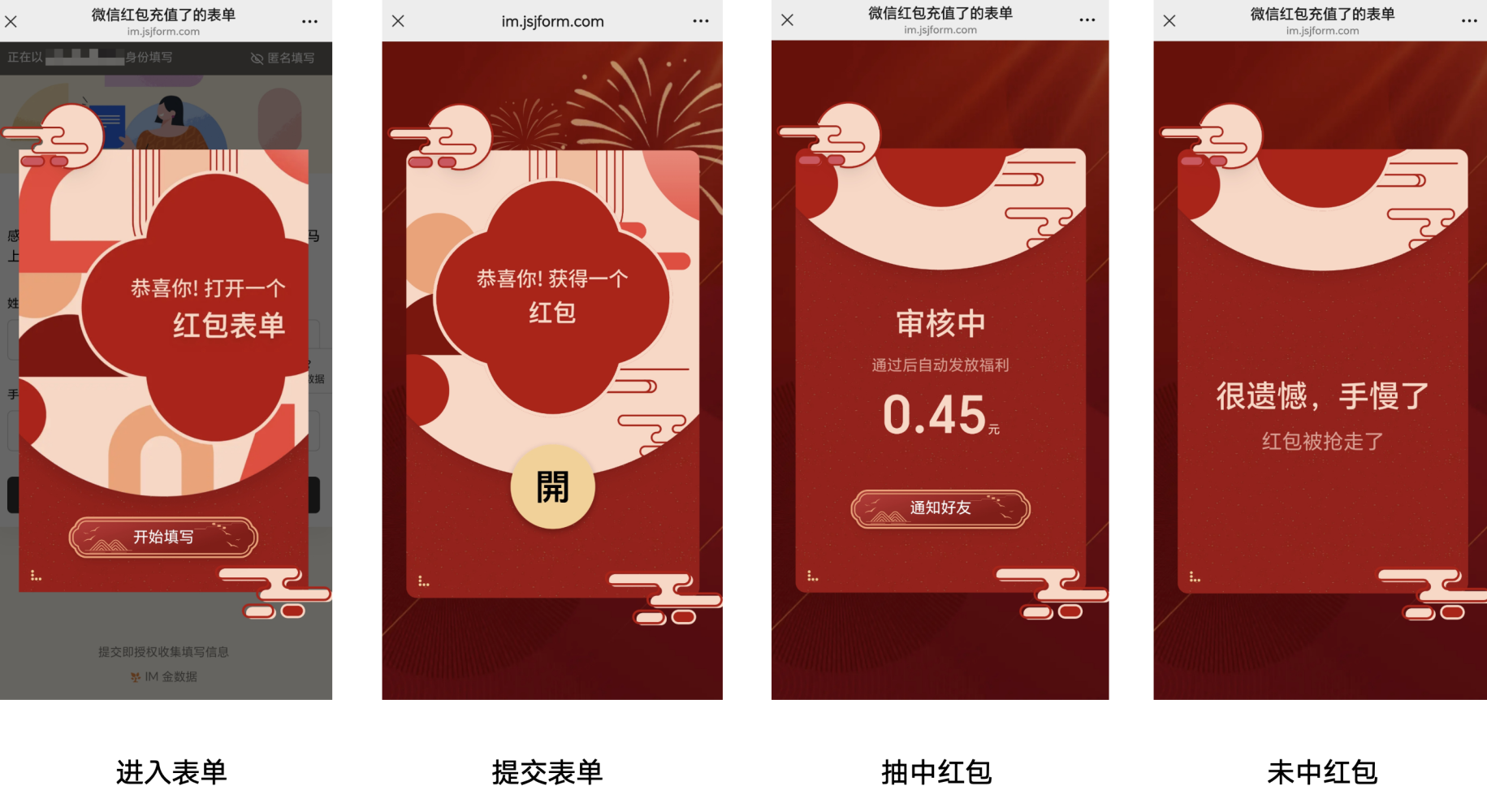 答:活动结束后,打开「微信红包」功能,设置提交即领取、固定金额20元、不限制领取,自己填写表单每天领取200元。