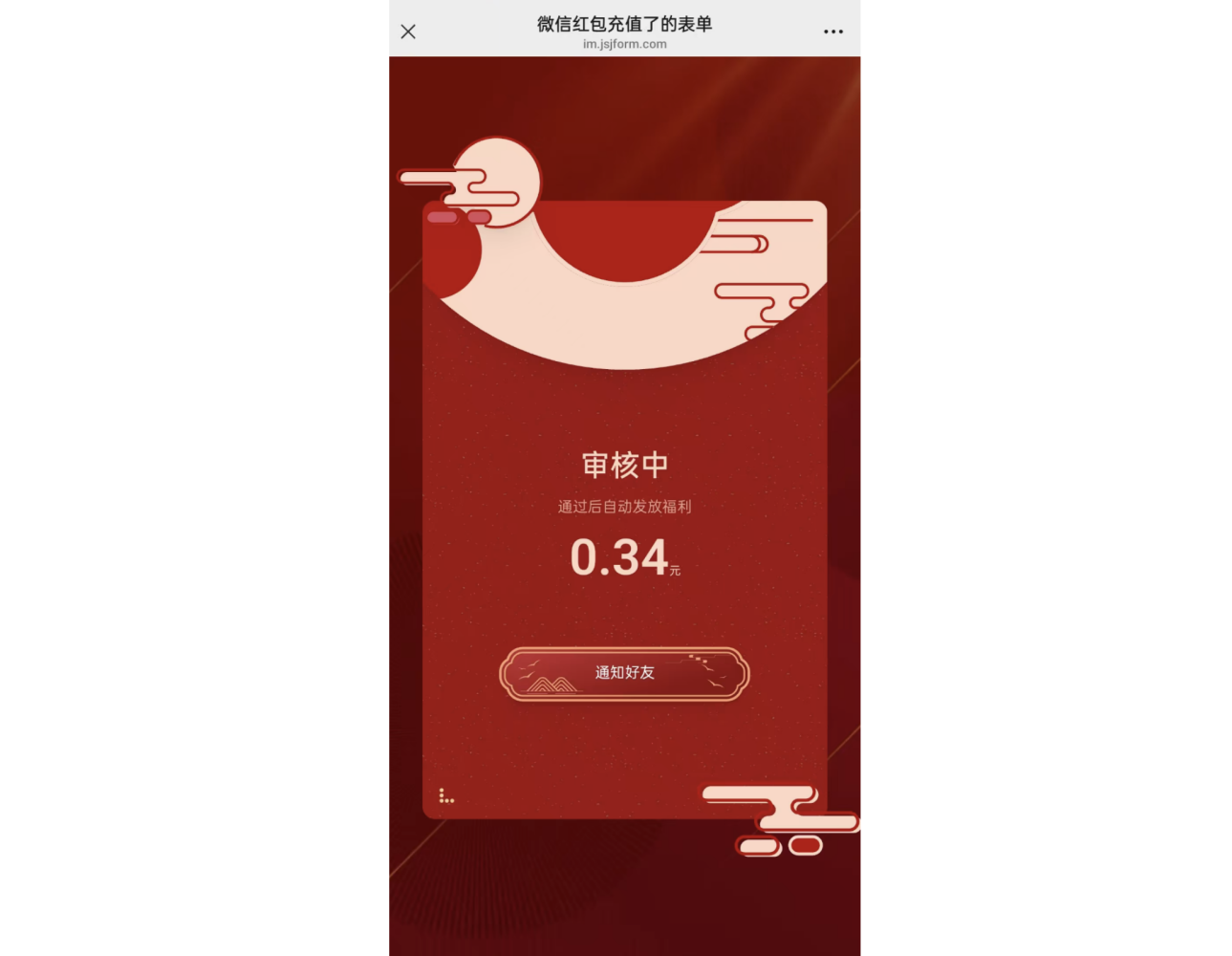 表单填写者的微信未关注金数据公众号,就由服务通知推送微信红包,然后点击领取。