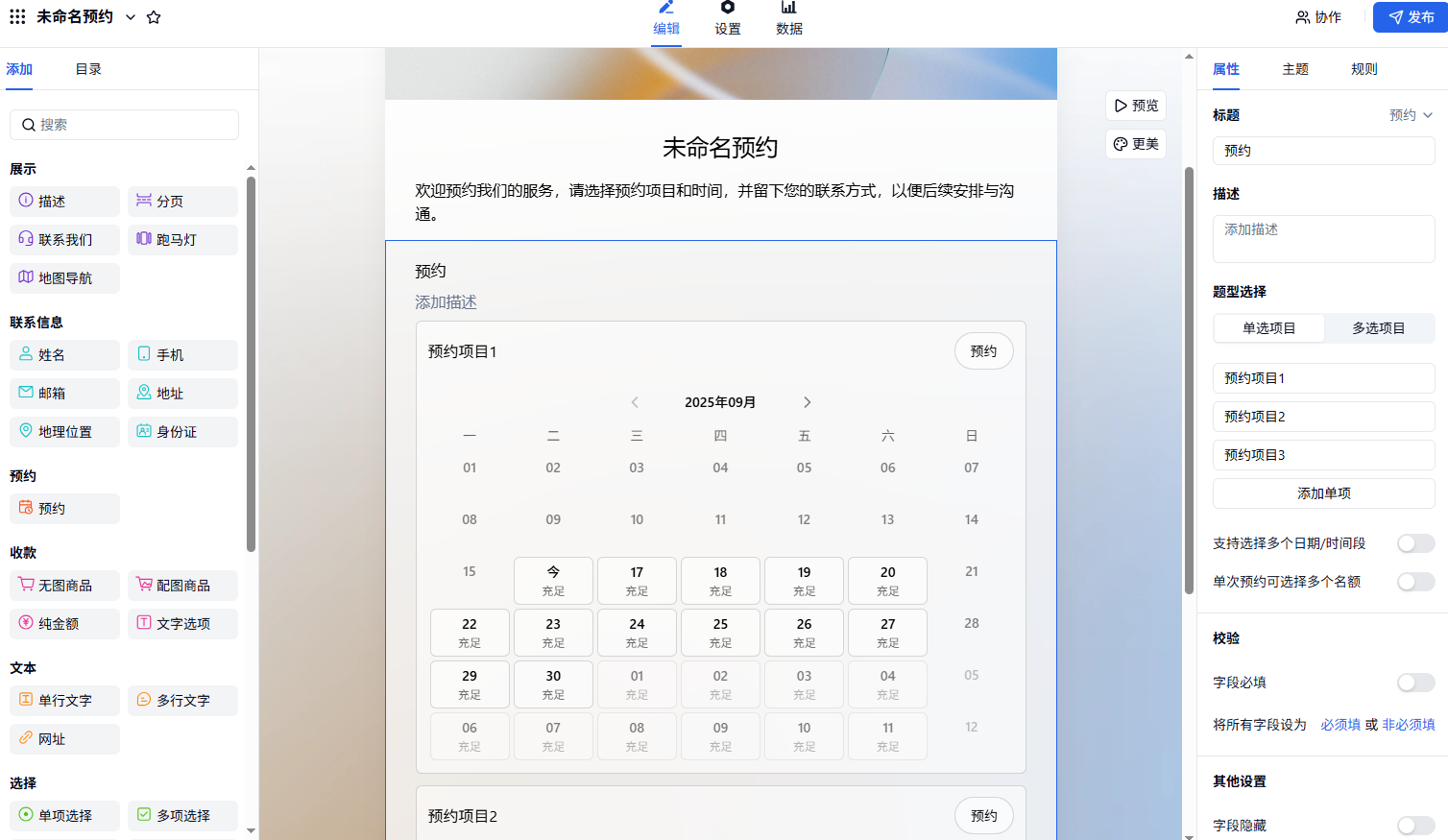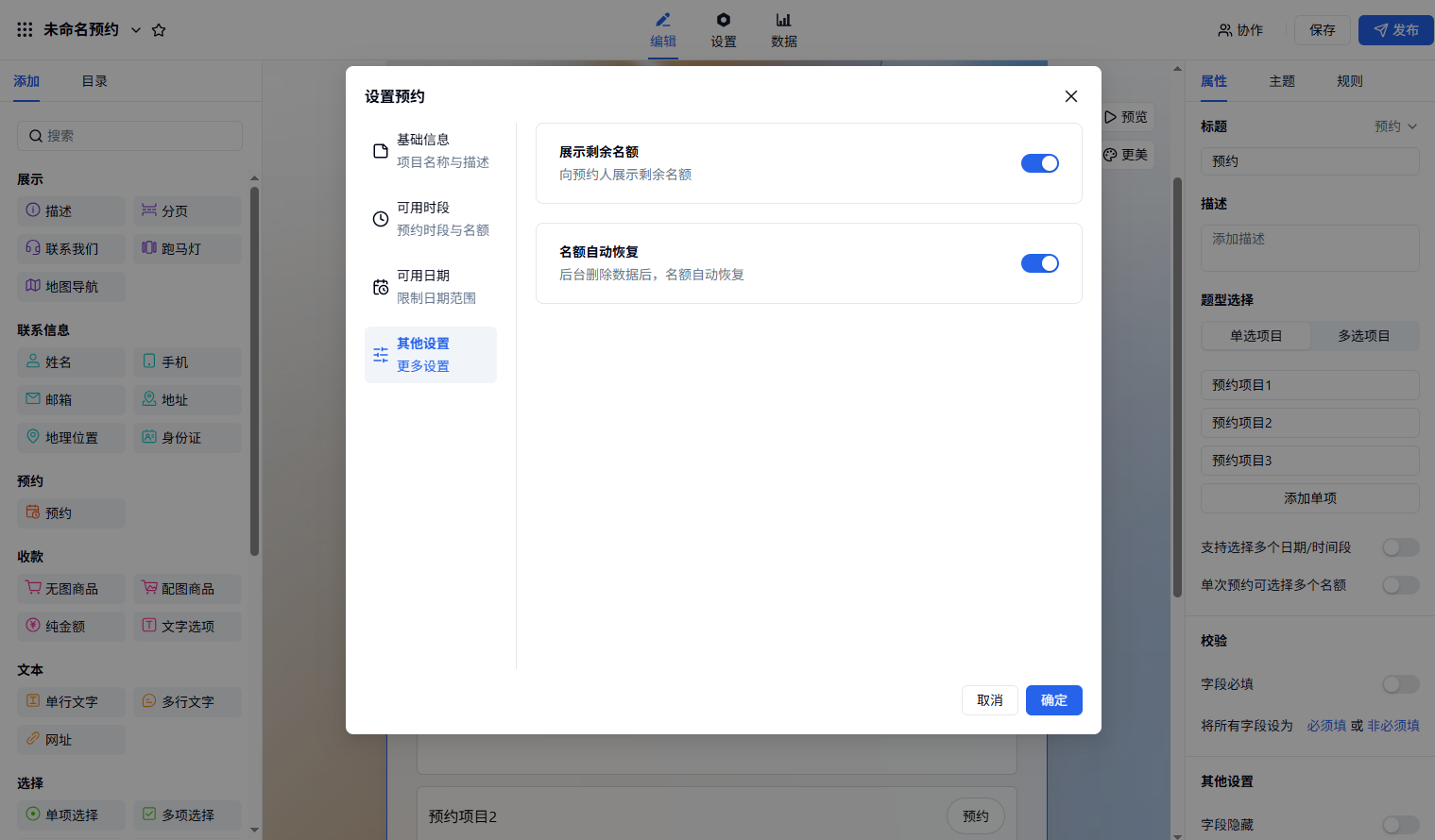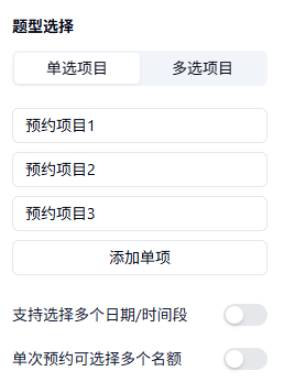 项目数量:单个预约字段最多支持添加 50 个项目。