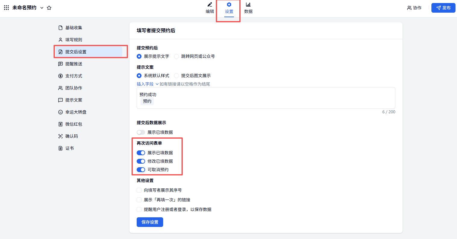 限制提前预约时间:如你的预约项目需要提前预约,可设置提前预约的天/小时;