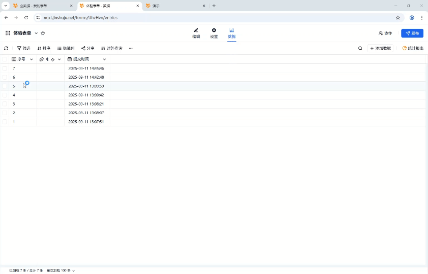 选中多条数据或全选后,可进行批量删除。表单数据页单次最大加载 500 条,若数据量较大需批量删除,请点击选择全部数据。当数据量超过 10,000 条时,不支持跨页全选,请分批删除。