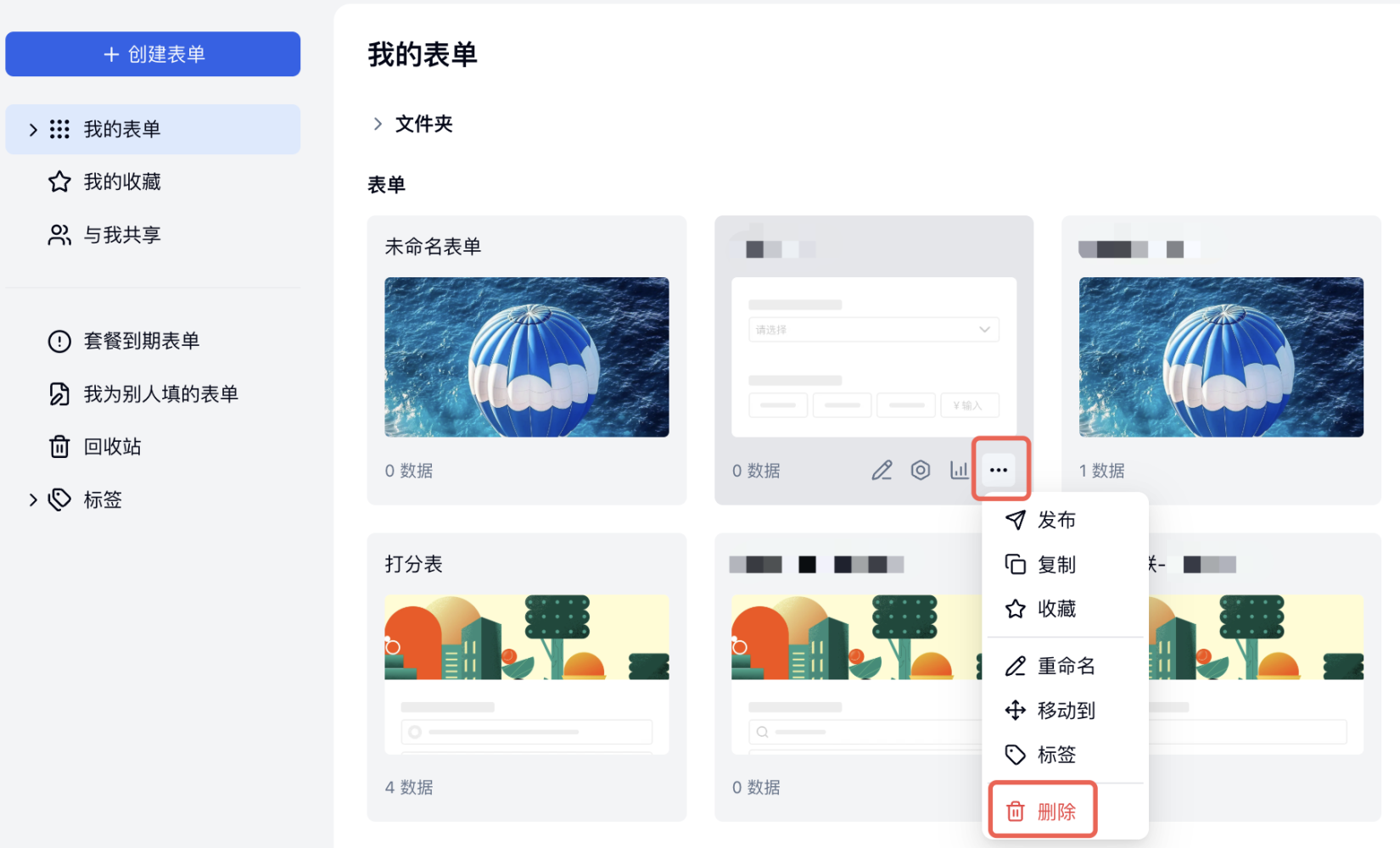 表单右下角,点击「删除」可以删除整个表单及其数据。