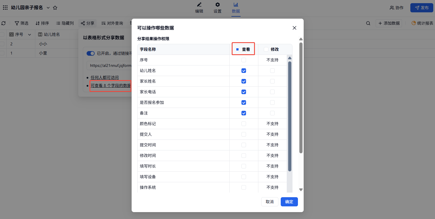 2.你可以根据实际需要设置分享页面查看的方式和需要展示的内容。