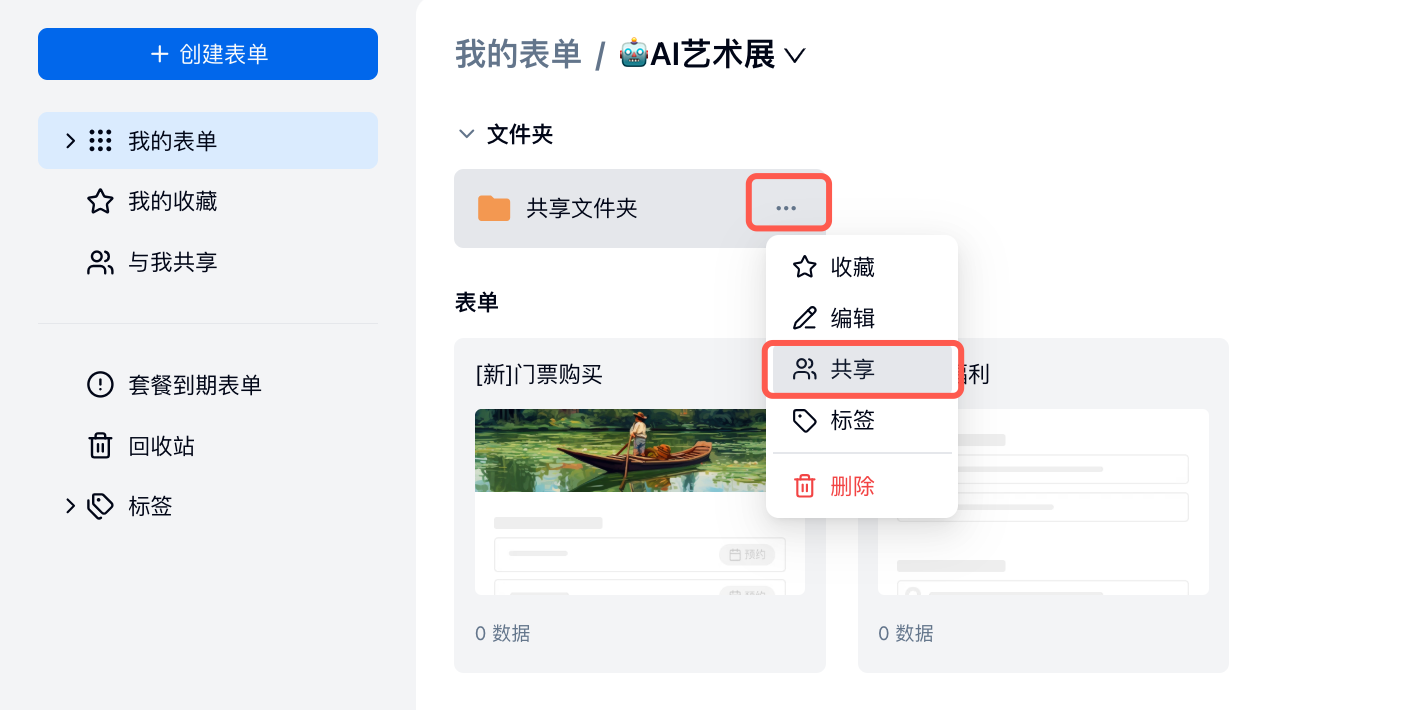 企业基础版及以上版本功能;如果你有业务文件夹要共享给同事,可以将对方添加为企业成员后操作。共享后,在文件夹内新建表单、移动表单到文件夹内,协作者都可以实时查看到。