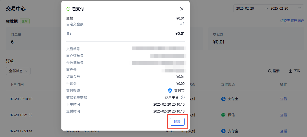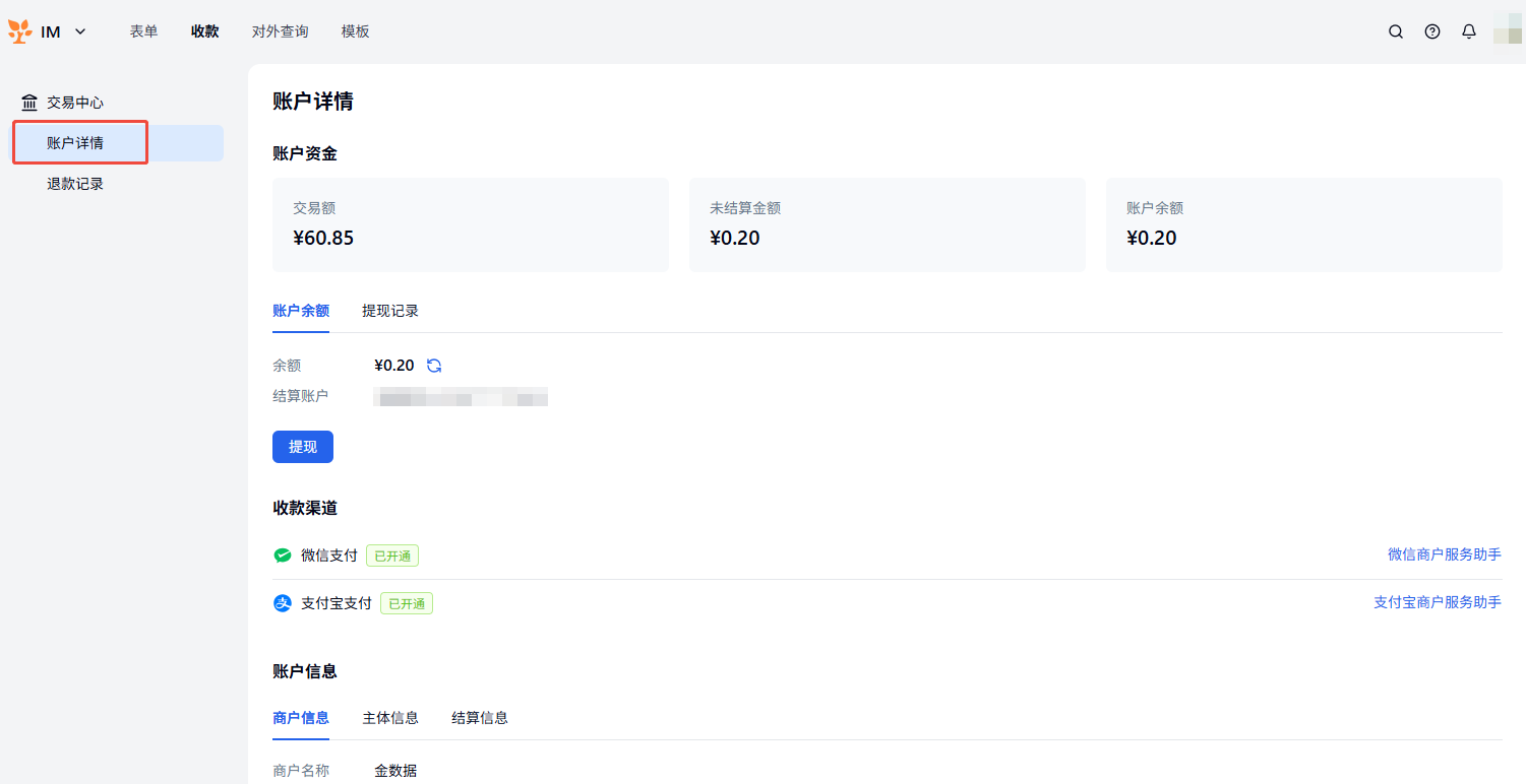 可在金数据平台直接操作,未提现前可退款,支持同步退款状态到表单 |