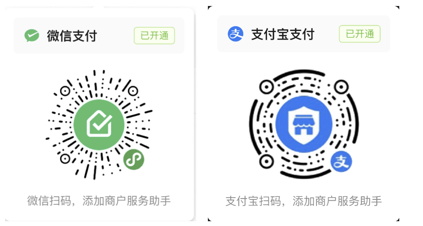 答:商户开通默认支持微信支付。需要支付宝的话,在「账户详情」→「支付宝支付」扫码开通。