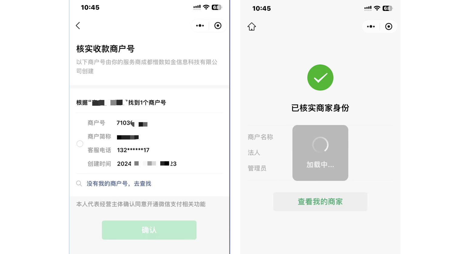 核对商户信息无误后点击确认。