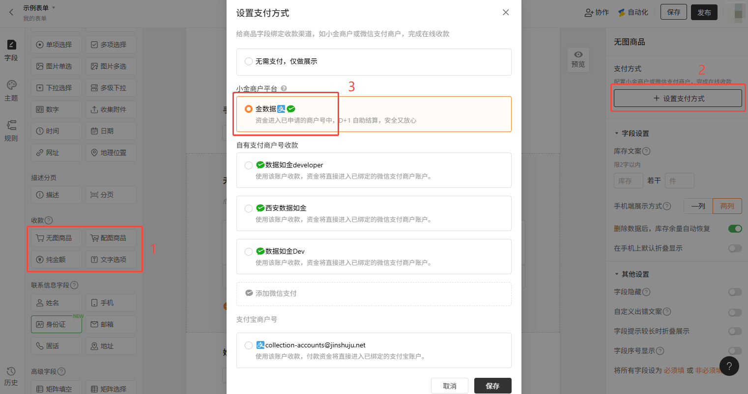 为表单配置「小金商户」收款