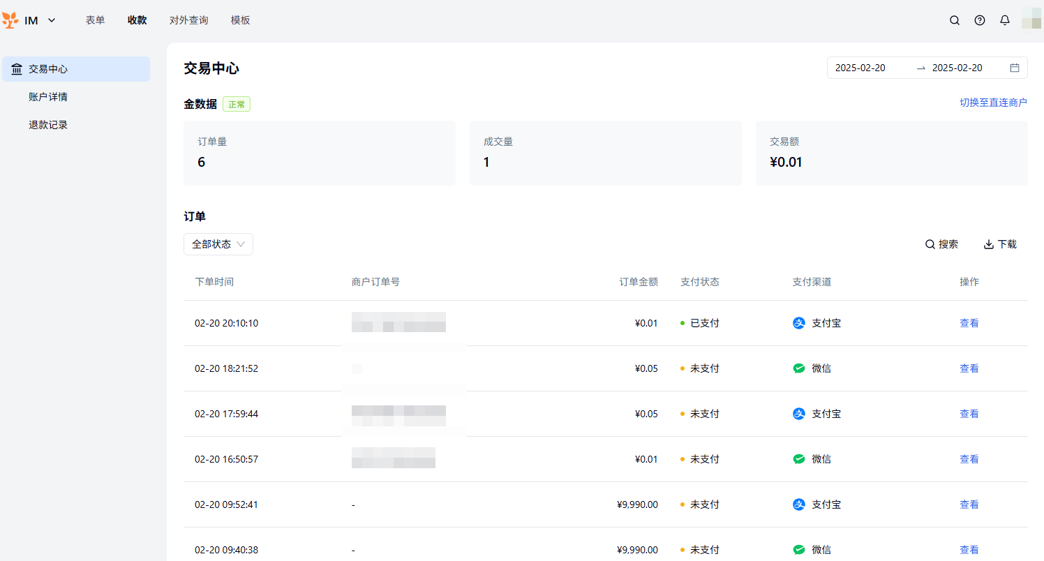 企业收款:订单收款、定金收取、尾款结算。
